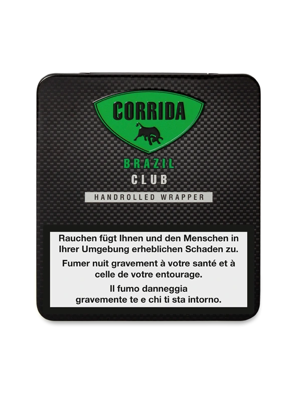 Die CORRIDA BRAZIL CLUB ist mit einem hochwertigen Brasil Arapiraca-Blatt handüberrollt. Die dunkle Färbung entsteht durch eine spezielle Tabakernte sowie Fermentierung, welche nur in Brasilien durchgeführt wird. Diese geben dem Zigarillo mehr Aroma und lassen es gleichzeitig milder und süsslicher schmecken. Geschmacklich bleibt das Zigarillo ein Aromenspiel, das durch Kaffee und floral-süssliche Noten ergänzt wird.